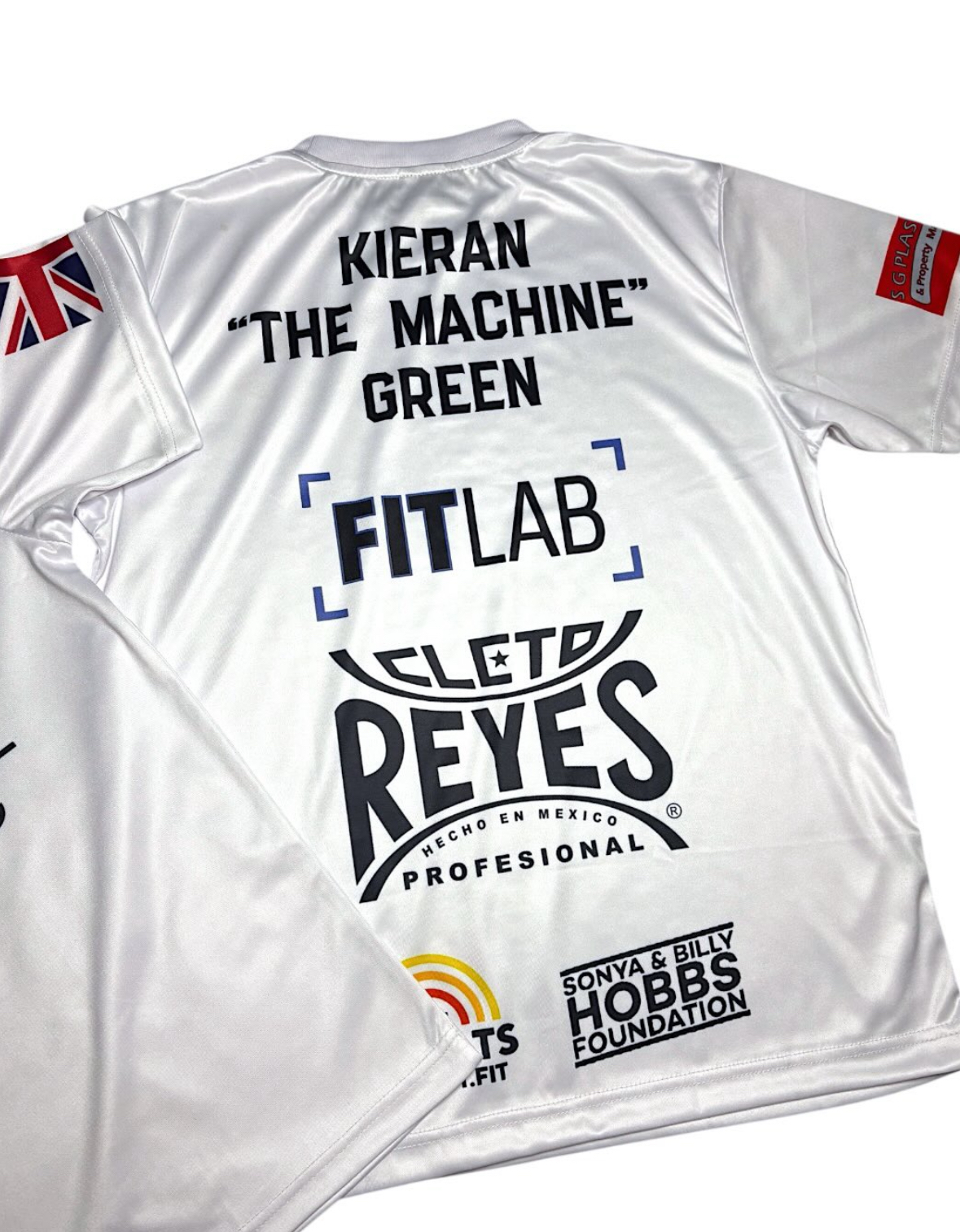 White metallic red fight kit with red glitter printing and red glitter embroidery